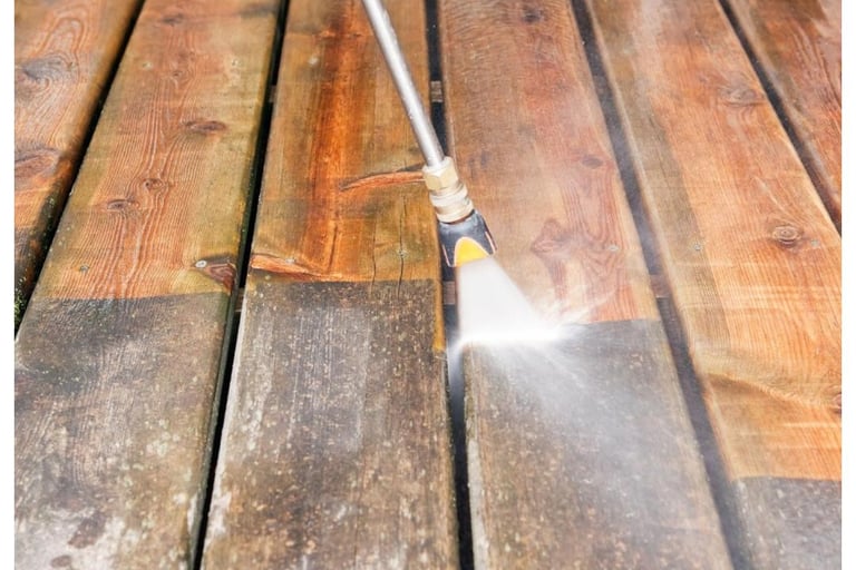Carefully executed cleaning as to not damage wood or composite fencing or decking